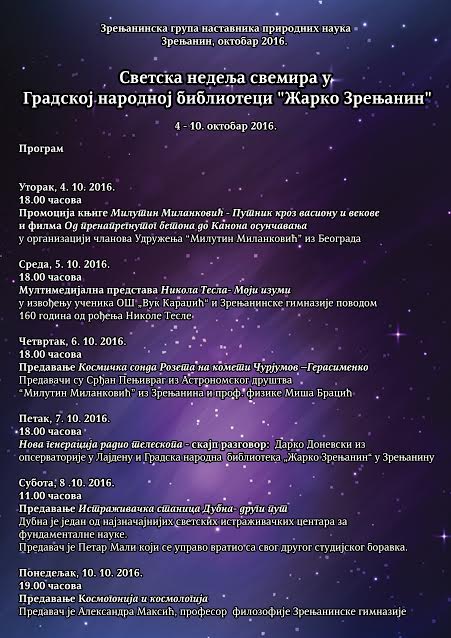 Kompletan program Svetske nedelje Svemira možete pogledati u prilogu.
